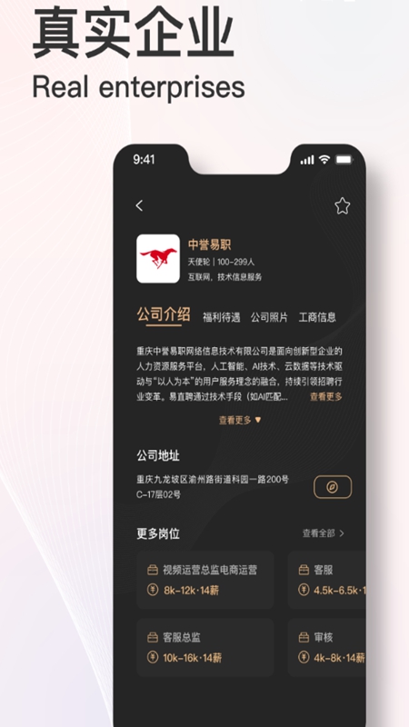 1.真实核验机制:采用“AI初筛+人工复核+动态抽查”三重验证体系,确保入驻企业的合法性及职位的真实性,杜绝虚假招聘信息;求职用户可绑定学历、职业证书等数据进行身份验证,解锁更多深度功能,构建双向透明的职场社交圈。