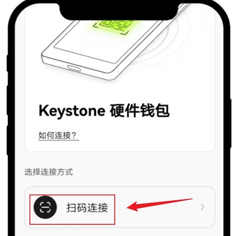 2、点击【扫码连接】,扫描您的 Keystone 硬件钱包上的二维码,并仔细按照提供的说明操作。