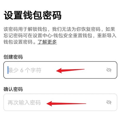 5、创建一个强密码来解锁您的钱包。