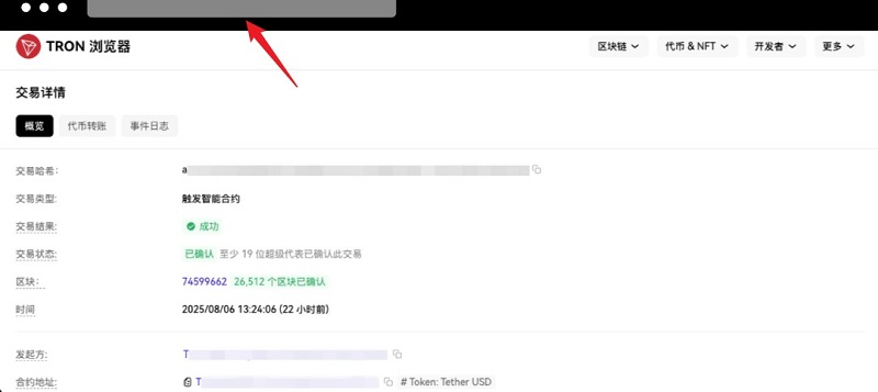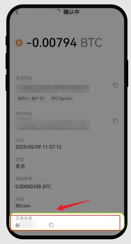 1.在完成发送交易操作后,系统将自动跳转至交易详情页面,您可在页面中找到并复制 “交易哈希”。