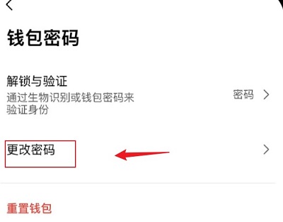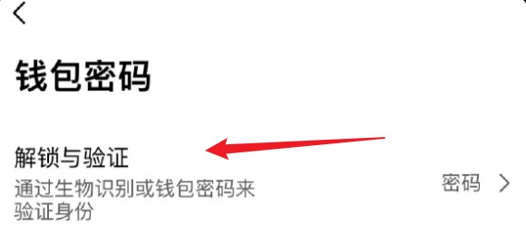 1.在钱包设置页面中,点击【钱包密码】-【解锁与验证】,您可以选择偏好的验证方式(生物识别或密码),然后根据页面提示完成修改验证方式的操作。