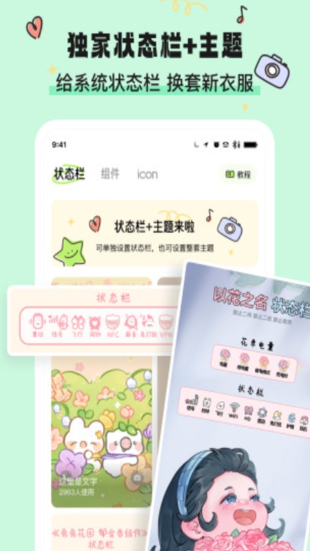 1.状态栏主题化:支持自定义WiFi、蓝牙等图标样式,甚至一键应用整套主题设计;