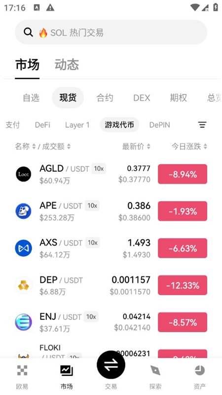 4.下单交易:在选定的交易对页面中,可以看到当前的买卖盘情况。选择合适的价格和数量,并点击对应的交易按钮(买入或卖出)来提交订单。