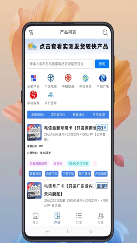1.智能库存动态监控:按地区、套餐类型等维度分类管理号卡资源,实时更新可用库存数据,避免超卖或缺货风险;