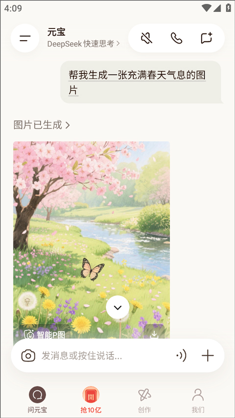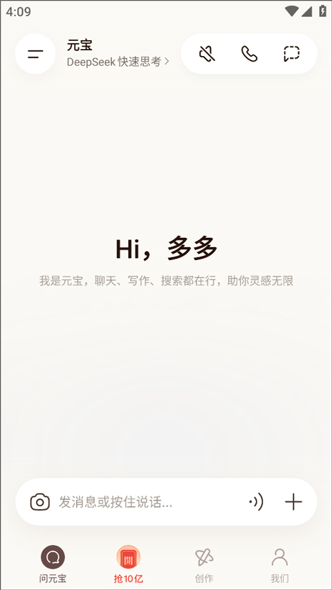 1、打开腾讯元宝app,进入后点击下方“抢10亿”;