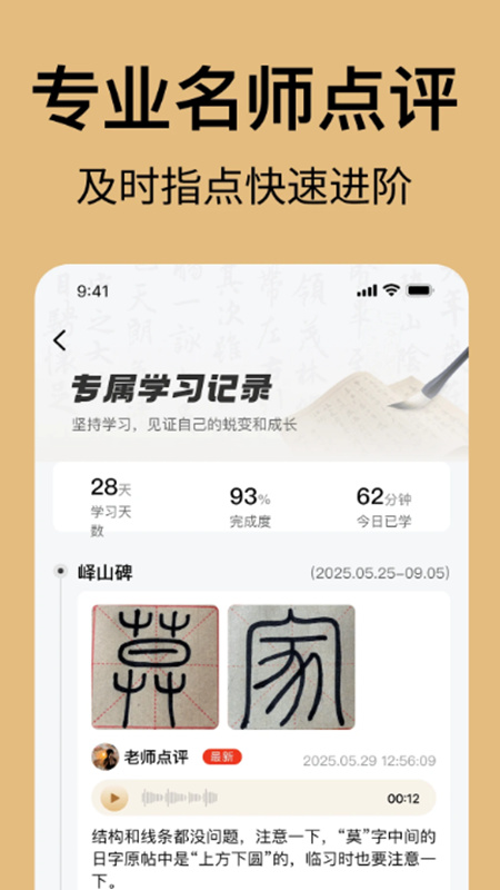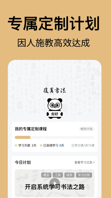 2、通过初始测试评估用户书法基础,生成包含“每日30分钟”的12周学习计划。课程涵盖笔法精讲、结构解析、创作实践等模块,支持语音讲解与图文注释双模式。