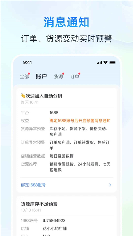 店铺授权到期、每日经营数据提醒通知铺货货源推荐