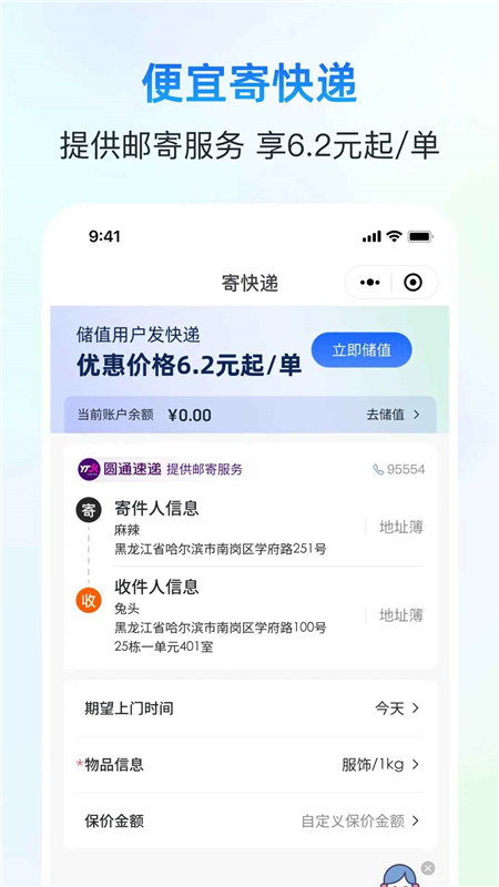 提供邮寄服务 享6.2元起/单