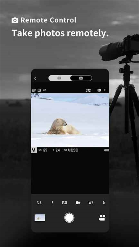 1.无线遥控拍摄:手机作为取景器远程控制相机的拍照、录影功能。