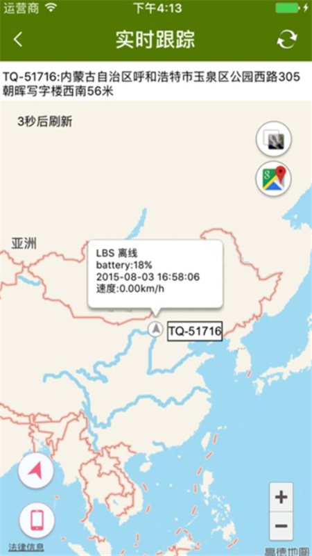 1.实时定位:显示设备当前准确位置,支持地图视图切换(卫星、平面等)。