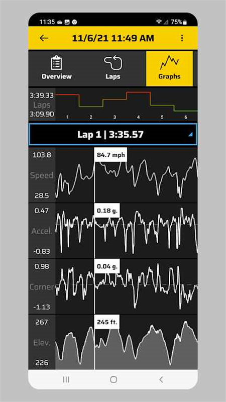 3.所有级别的赛车手,现在都可以使用 Garmin Catalyst 应用程序查看 Garmin Catalyst 设备记录的赛车表现,包括圈速和赛段摘要等数据,简单直观。