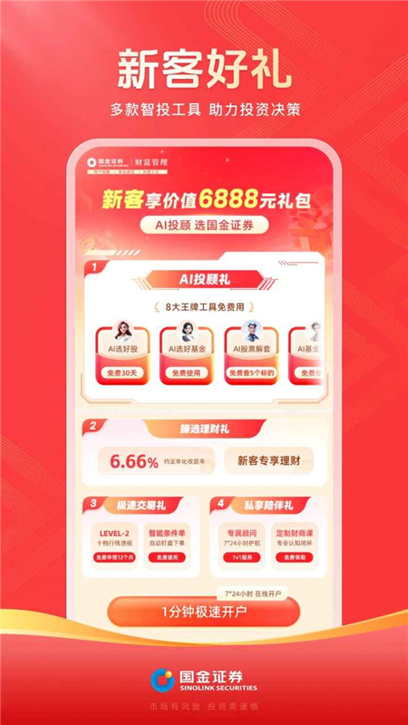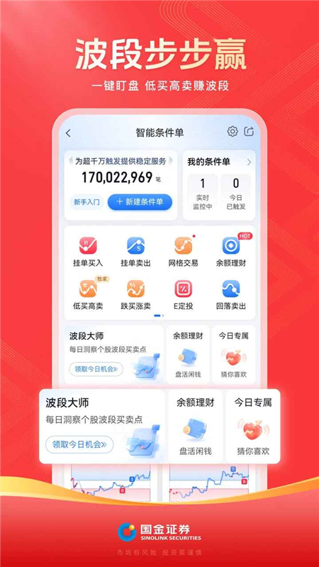 国金佣金宝官方app客户端是国金证券佣金宝app官方应用,提供线上股票账户开户、业务办理、专属财富管理、闲置资金理财等功能,产品众多,可实现精准匹配服务,非常方便!