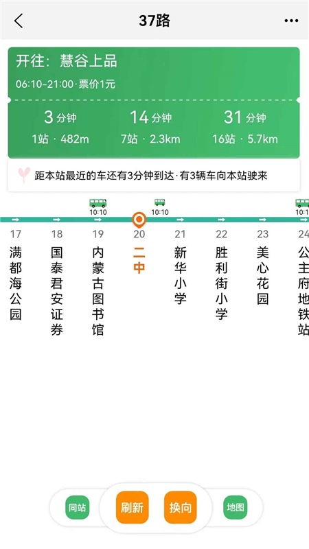 目前提供呼和浩特市区公交车辆实时信息查询、公共交通出行方案、