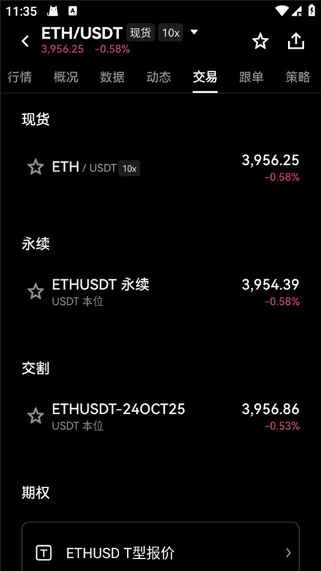 搜索并选择“ETH/USDT”或其他你想用的交易对。