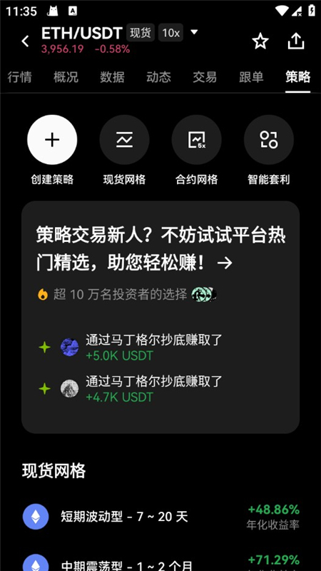 设定多个买卖挂单,自动在价格区间内进行反复交易,适合震荡市场。