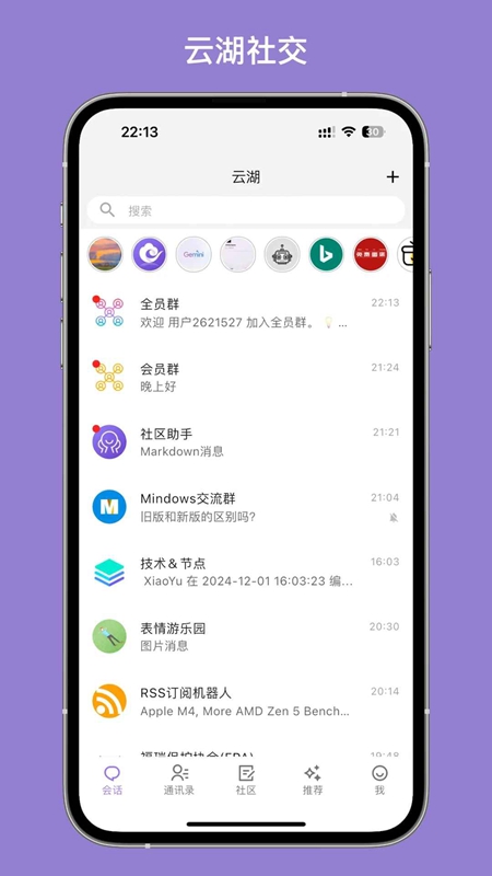 云湖社交聊天平台APP最新版是由北京九万智达科技有限公司开发的一款智能社交工具,融合了多平台支持、云端存储同步、个性化机器人服务及开放API等核心技术能力!