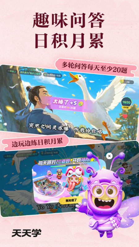 2、将知识点转化为“成语消消乐”“诗词飞花令”“病句大作战”等30+款互动游戏,每关限时3分钟,通关后解锁“语文小博士”称号与虚拟勋章,激发学习兴趣,用户日均主动学习时长超25分钟。