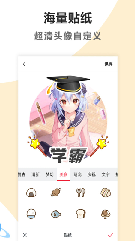 4、内置1000+款艺术字体(如“手写体”“火焰字”“镭射光效字”)及动态贴纸(如“闪烁的星星”“飘动的彩带”),支持调整文字颜色、透明度、旋转角度,用户可添加“个性签名”“生日祝福”等文案,让头像更具故事感。