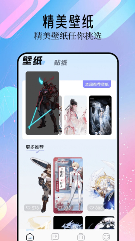 5、开设“主题创作”“图标设计”“壁纸投稿”三大板块,用户可上传自己的美化作品并设置下载权限(公开/私密);支持按“热门”“最新”“收藏量”排序浏览他人作品,一键套用或下载素材进行二次编辑。