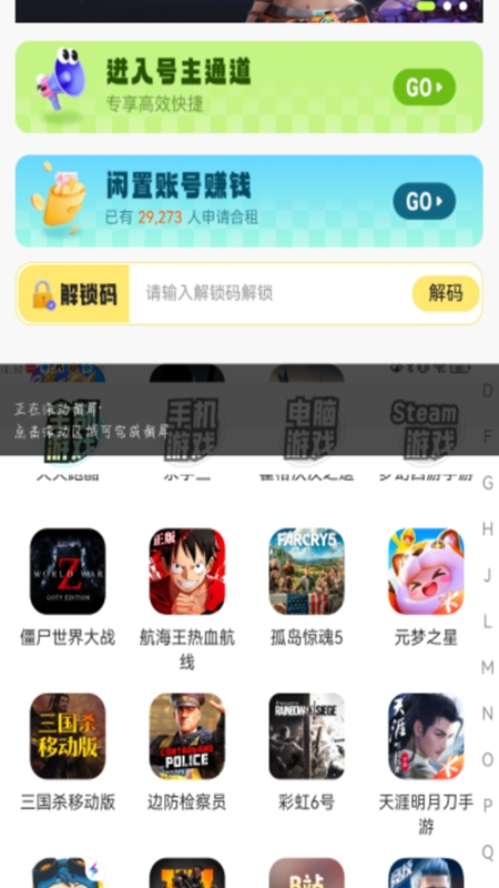 根据用户浏览历史自动推送感兴趣的账号;支持关键词筛选(按游戏名称、等级、装备属性等维度快速定位目标账号)。