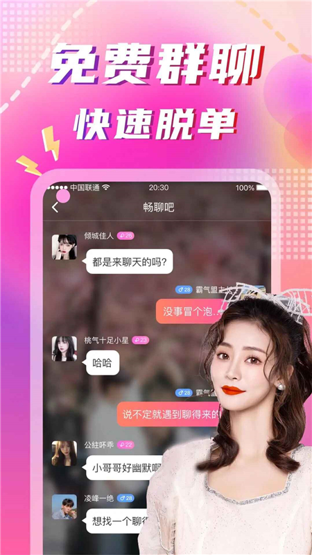 花样玩法,互动K歌,聊天,娱乐,文字,语音,视频聊,24小时等你来玩;