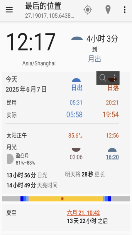 3.社交分享机制:支持将特定地点的日出日落时刻生成图片或链接,与好友共享美好瞬间;
