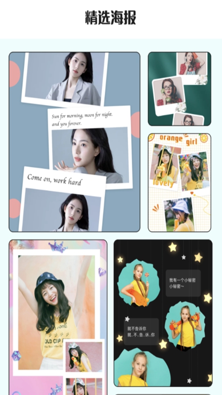 3.海量创意模板:提供上百种规则/不规则拼图布局及海报模版,支持自由拖动调整图片位置;