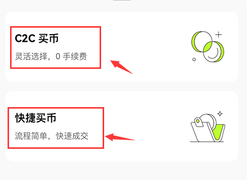 第一步:本站打开下载欧易APP最新版,在首页点击买币按钮,选择C2C买币或者快捷买币,此处以快捷买卖为例。