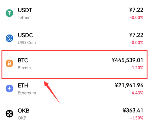选择你想购买的币种,USDT、BTC等都可以