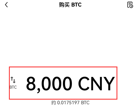 第二步:要购买的币种为BTC,输入需要购买的金额。点击如图所示的按钮即可切换成按币种数量购买。
