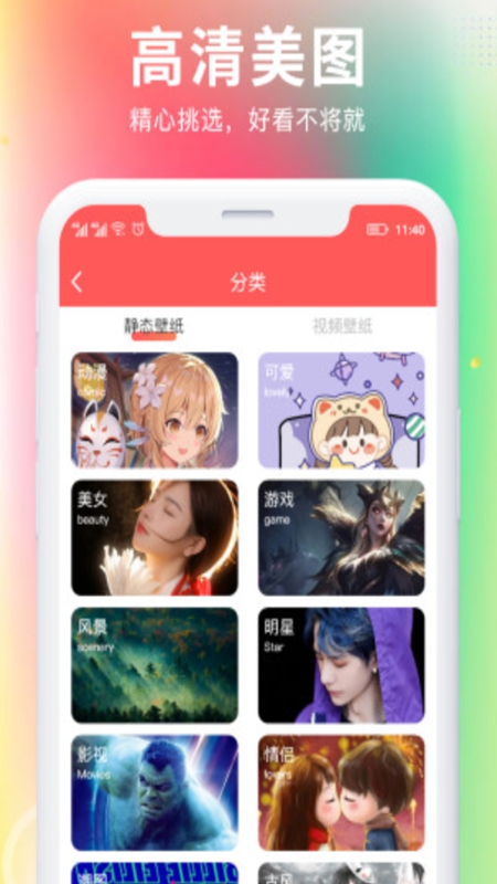 2.高清适配性:所有壁纸均为高清画质(如1080P),完美适配各种大屏幕尺寸,保证显示效果清晰细腻无失真。