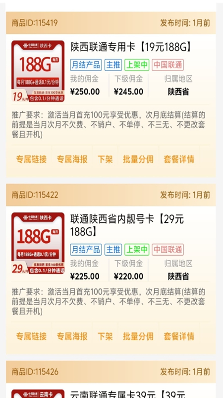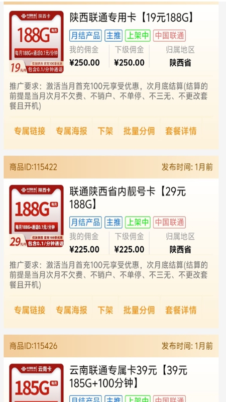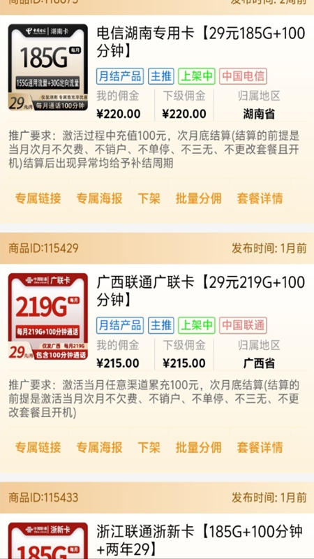 2.资源更新及时:提供国古号卡最新版资源一键下载功能,资源库实时更新,覆盖主流运营商号卡套餐,确保用户始终能获取最新、最热门的产品进行推广。