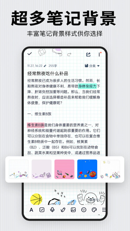 5、内置智能纠错功能,可自动检测错别字、语法错误并提供修改建议。AI续写功能根据用户输入的开头生成3种不同风格的结尾,例如记录旅行见闻时,可生成"文艺风""幽默风""实用攻略"三种版本供参考。