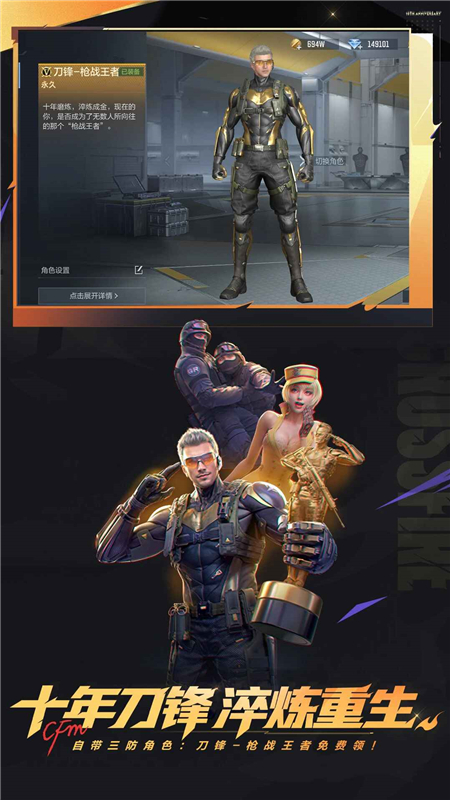 穿越火线枪战王者是腾讯游戏出品的CF正版第一人称射击手游,作为一款国民级竞技手游,游戏完美传承了PC端的品质和玩法,同时还针对手机端的操作特点,将3亿鼠标的枪战梦想延续到手机上,好玩的手感,让玩家随时随地体验极致射击乐趣和竞技对抗的热血,好玩就要一起玩。