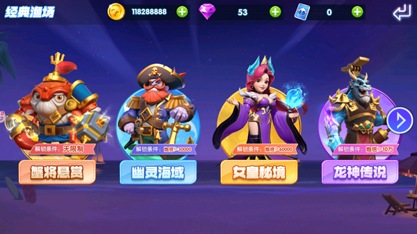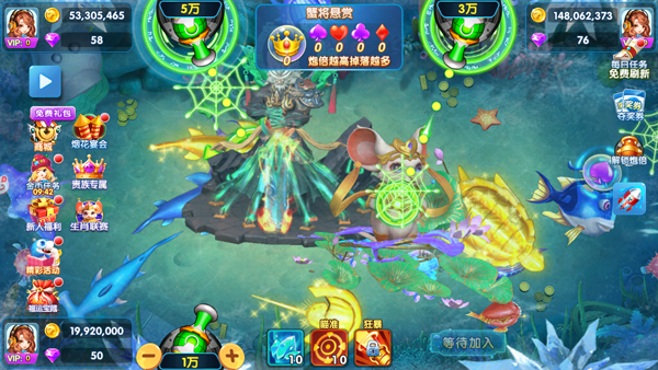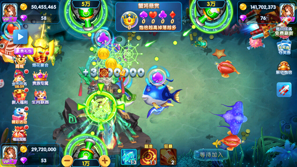 4.玩家可以使用金币来升级自己的武器,购买更强力的子弹,从而能够捕捞到更大更珍稀的鱼类,并获得更高的奖励。