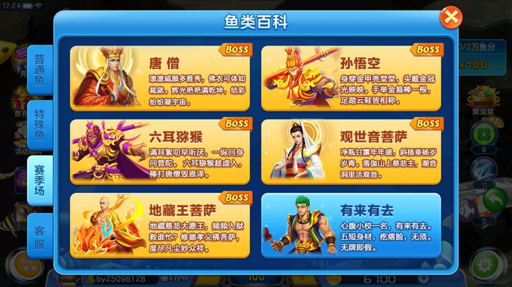 3.个性化的角色装扮:游戏中提供丰富的角色装扮,让你打造独一无二的捕鱼高手形象。