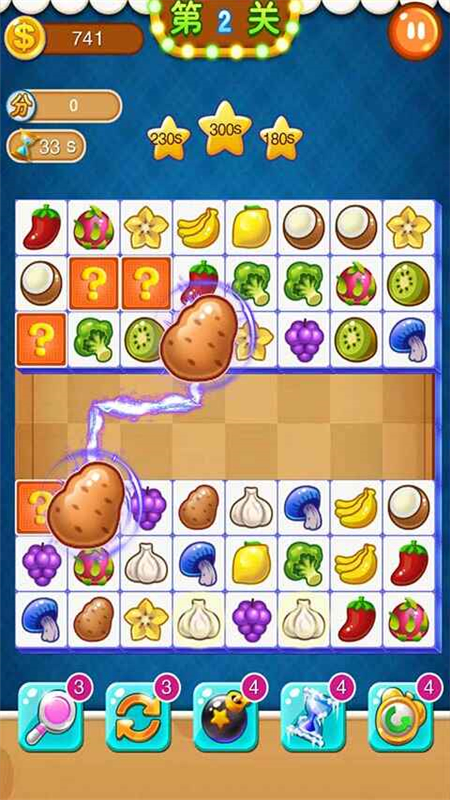 4、游戏结束条件:未在时间内完成任务或无可消除组合