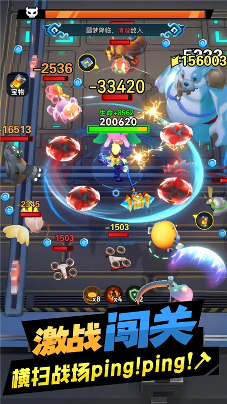 进入后可一次性领取大量改造、宝物。开始挑战后会源源不断刷出敌人,进度达到100%时挑战失败,杀死敌人一定数量可以增加层数。