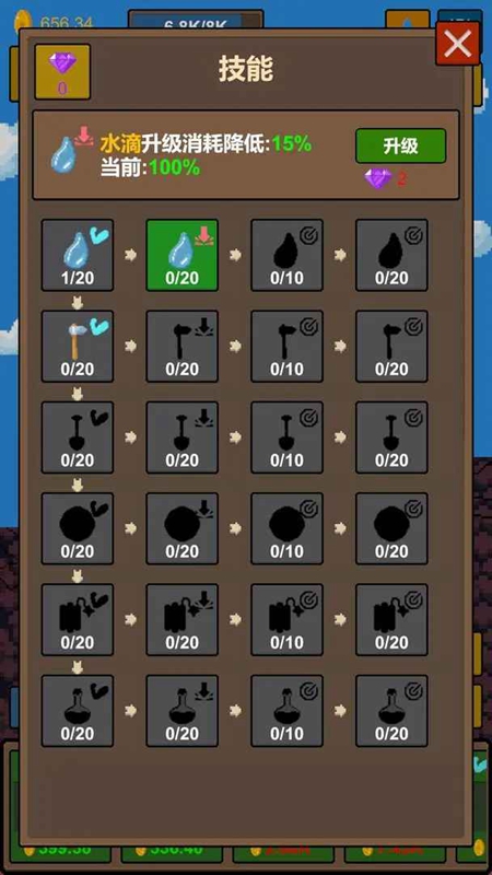 2.丰富道具系统:点击menu键会弹出道具卡,包括增加水滴(每次增加滴)和刺水炸弹(使屏幕中所有满状水滴全部破裂),大大提升了游戏的趣味性和可玩性。