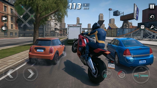 3.沉浸式音效设计:收录真实摩托车引擎轰鸣声、撞击反馈音效,搭配动感背景音乐,强化竞速氛围。