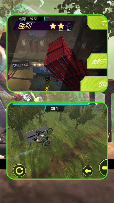1.游戏画面精美,物理效果逼真,让玩家感受到摩托车的真实运动感。