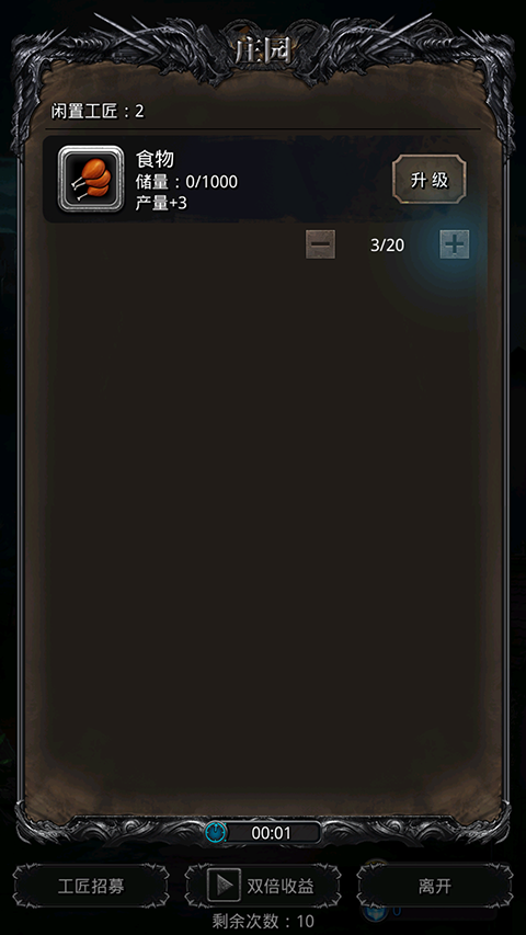 生产资源: 招募农民生产粮食,派遣工人挖掘铁矿、木材。