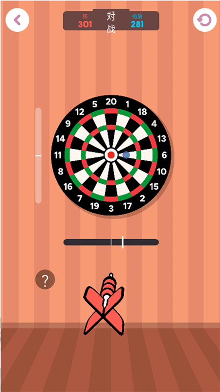 利用简单滑动手势瞄准并投掷飞镖,击中靶心得分最高。