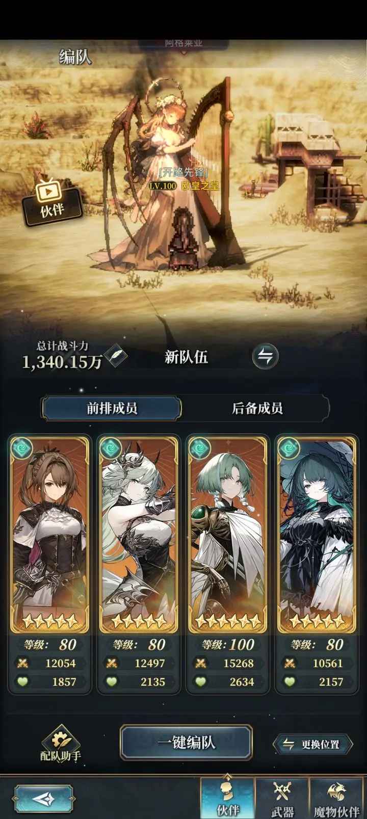1、阵容:主角(法)+兰朵莉亚+米蒂尔+弗洛拉