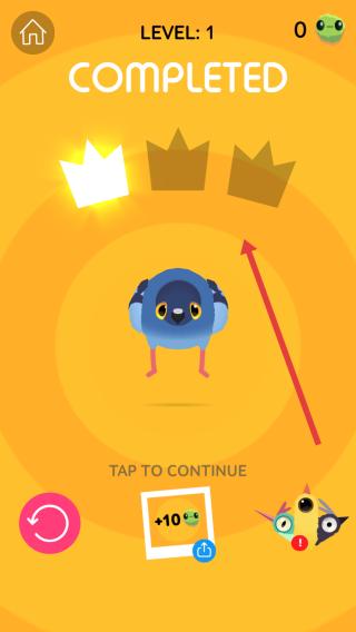 3、完成LEVEL1,看【COMPLETED】界面,点击继续,争取收集更多道具获皇冠,提升关卡评价,解锁新挑战。