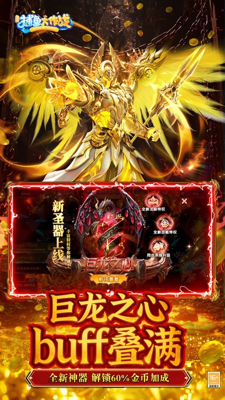 高爆率机制:提升黄金鱼、BOSS捕获率30%,新版本“神器系统”额外增加全服渔场掉落率,保障玩家收益。