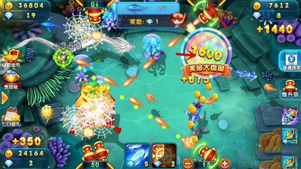 高爆率设计:主打“超高爆率,一炮万亿”,玩家可通过击败BOSS、参与转盘抽奖、渔劵兑换等方式获取金币和道具,轻松享受爆金乐趣。