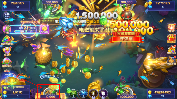 采用先进的D技术,打造精美的海底场景,呈现绚丽多彩的海洋世界,鱼类形态逼真,特效震撼,如万炮齐发的爆炸输出、全屏爆金币的震撼场景,让玩家仿佛置身真实的海底捕鱼环境,带来沉浸式视觉体验。