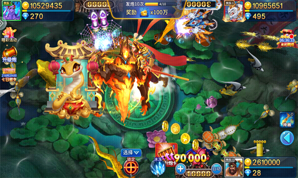 炮台升级:从基础炮台到高科技激光炮,玩家可通过策略升级解锁不同属性炮台,提升捕鱼效率。