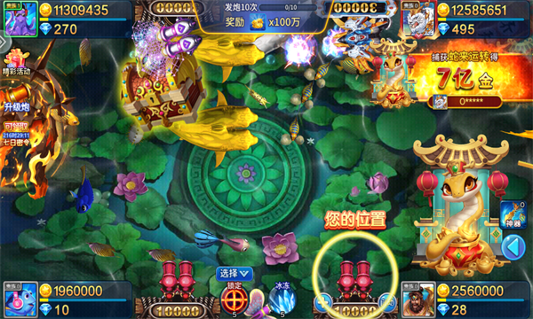 策略捕鱼:玩家需根据鱼种特性调整炮台威力,例如优先攻击高倍数鱼群或特殊BOSS,利用“粘着打”技巧实现一炮多鱼,提升收益效率。